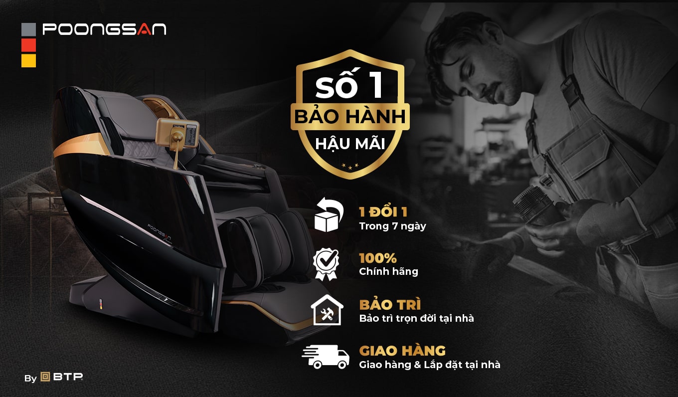 Bên cạnh đó, chính sách bảo hành ghế massage Poongsan sẽ bao gồm: bảo hành toàn bộ ghế 2 năm, khung ghế 5 năm.
