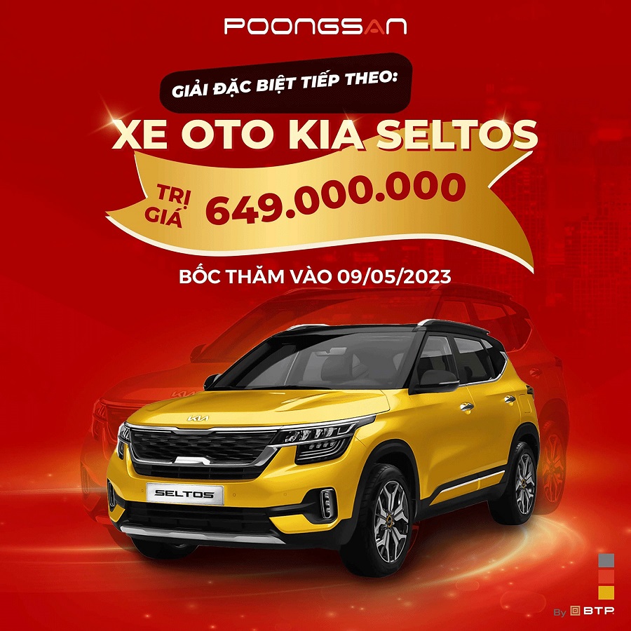 + Ngày 09/05/2023: quay số trúng thưởng xe ô tô Kia Seltos 1.4 DCT Deluxe
