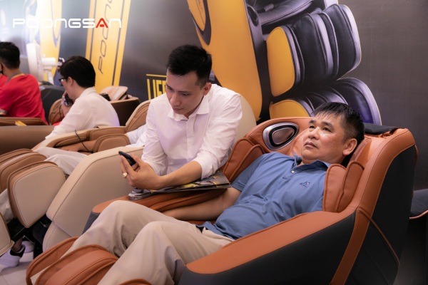 Khách hàng trải nghiệm trực tiếp ghế massage hỗ trợ trị liệu cao cấp tại hệ thống đại lý ủy quyền chính hãng của Poongsan