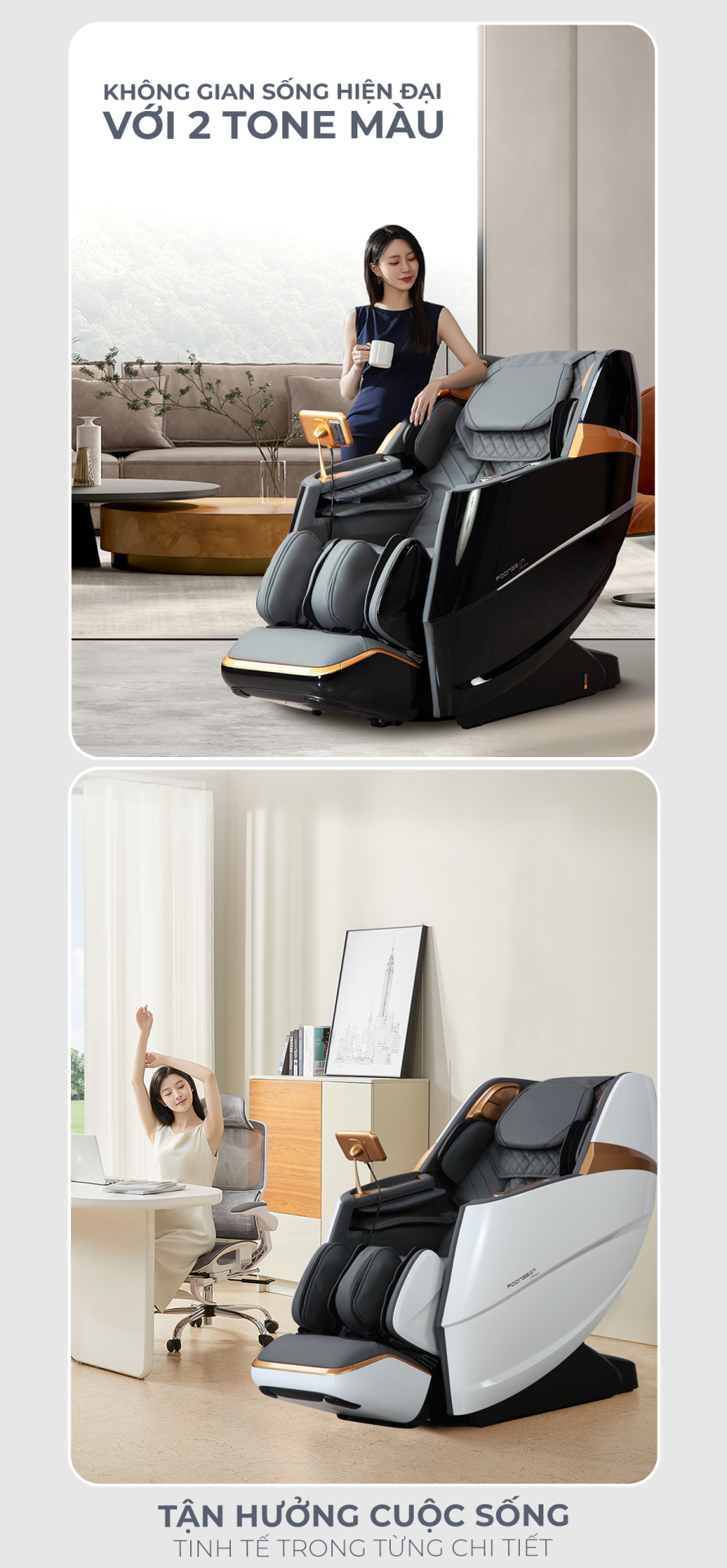 Ghế massage Poongsan MCP 806 thiết kế với phong cách hiện đại, sang trọng và chú trọng đến sự thoải mái của người dùng. Ghế được thiết kế ôm sát cơ thể, tạo cảm giác thoải mái và thư giãn tối đa.