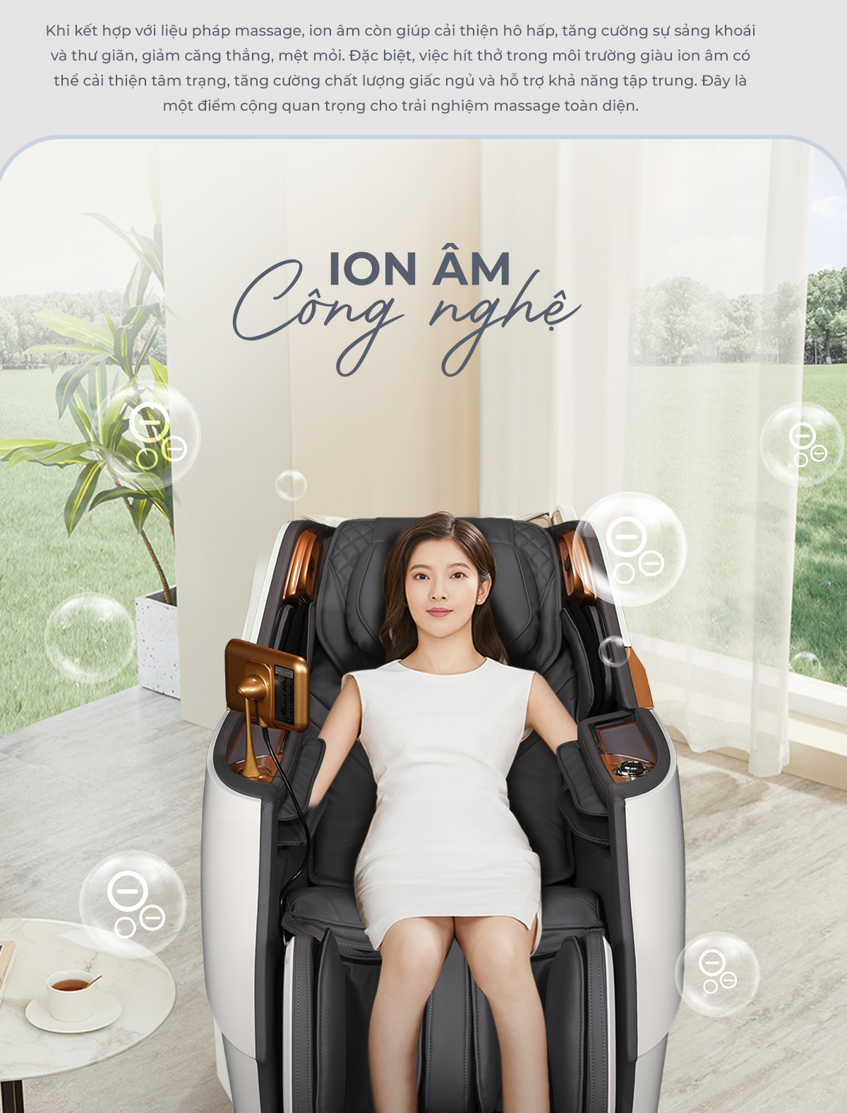 Poongsan MCP 806 là một trong các sản phẩm ghế massage hiếm hoi được tích hợp công nghệ tái tạo ion âm. Ion âm hay còn gọi là "vitamin của không khí", là những hạt mang điện tích âm có khả năng khử mùi, diệt khuẩn và giảm tĩnh điện. Từ đó cải thiện chất lượng không khí và mang lại không gian trong lành tự nhiên.