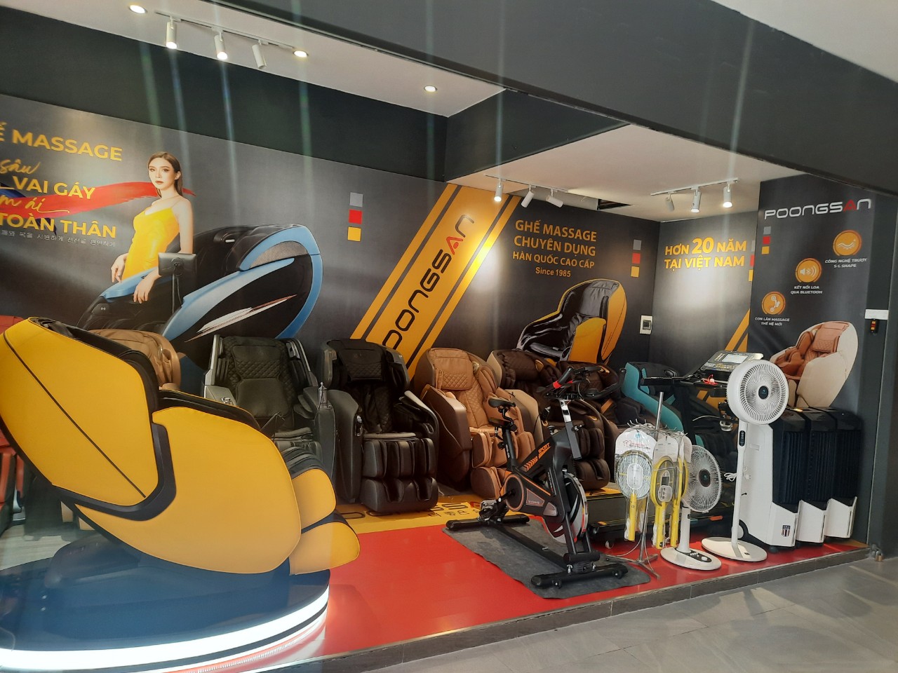 Cửa hàng ghế massage Poongsan tại TTTM Go! Vinh có diện tích rộng rãi, tạo cảm giác thoải mái cho khách hàng khi mua sắm. Gian hàng trưng bày nhiều mẫu ghế massage của Poongsan, bao gồm các mẫu ghế ở tầm trung và cao cấp, đáp ứng nhu cầu của nhiều đối tượng khách hàng. Để dễ dàng tìm kiếm và mua sắm tại gian hàng, bạn có thể tham khảo một số hình ảnh thực tế dưới đây: