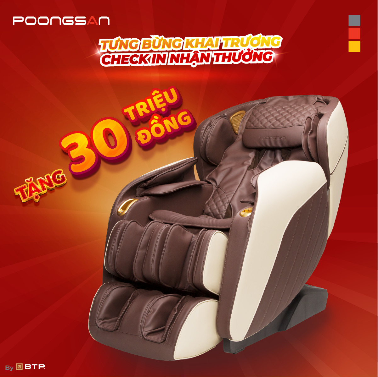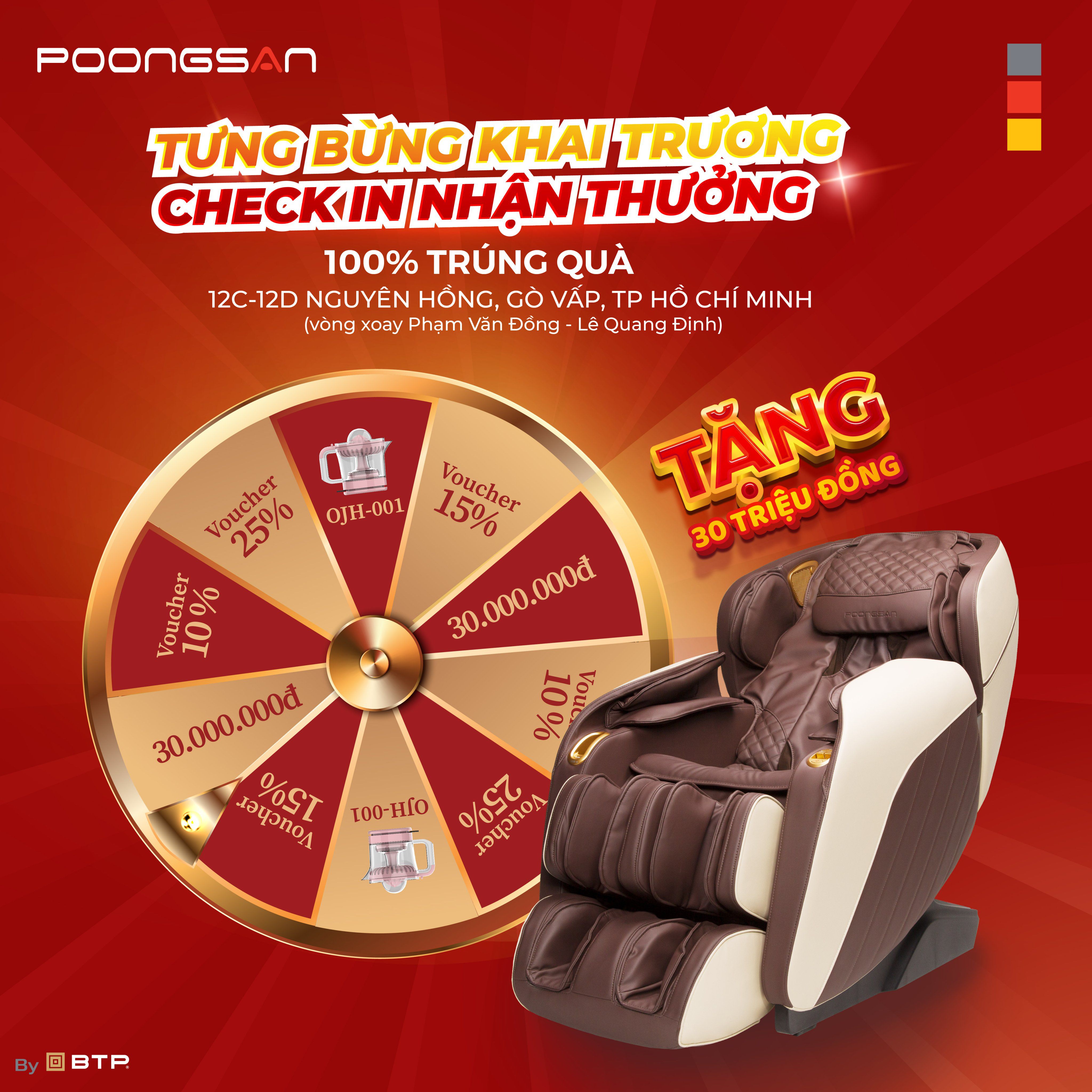 Ngoài cơ hội nhận quà cực đã, showroom Poongsan Gò Vấp còn GIẢM GIÁ KHỦNG tất cả thiết bị chăm sóc sức khỏe chuyên dụng Hàn Quốc. Đây là CƠ HỘI VÀNG để bạn sở hữu ghế massage chất lượng với giá thành tốt nhất thị trường.