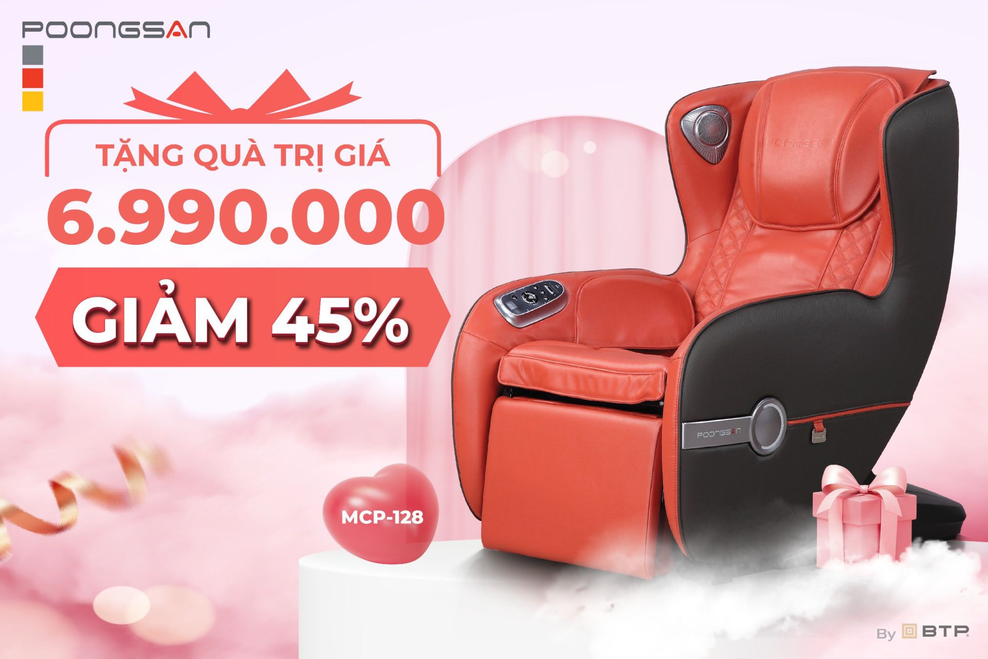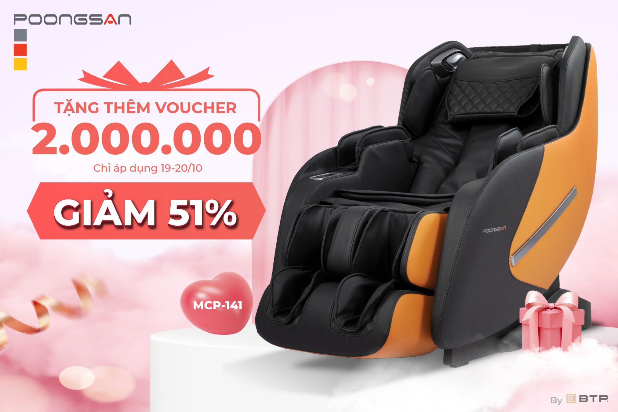 Nhân ngày Phụ nữ Việt Nam, Poongsan ưu đãi khủng giảm ngay 51%, đặc biệt trong 2 ngày 19 - 20/10 MCP-141 sẽ được giảm thêm 2 triệu. Đừng bỏ lỡ cơ hội sở hữu ngay ghế massage toàn thân với chi phí cực thấp.